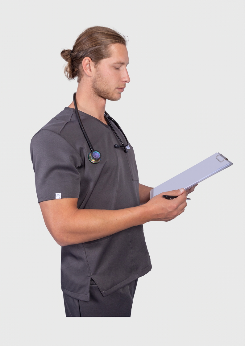 This simple design Is modern without sacrificing the functionality that you need In a scrubs top.