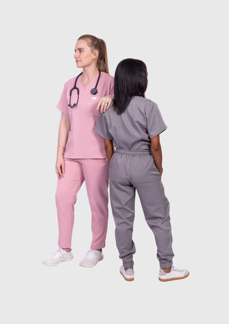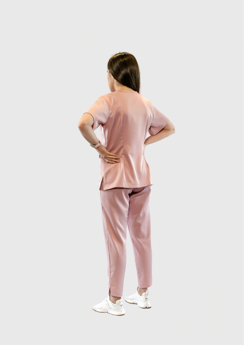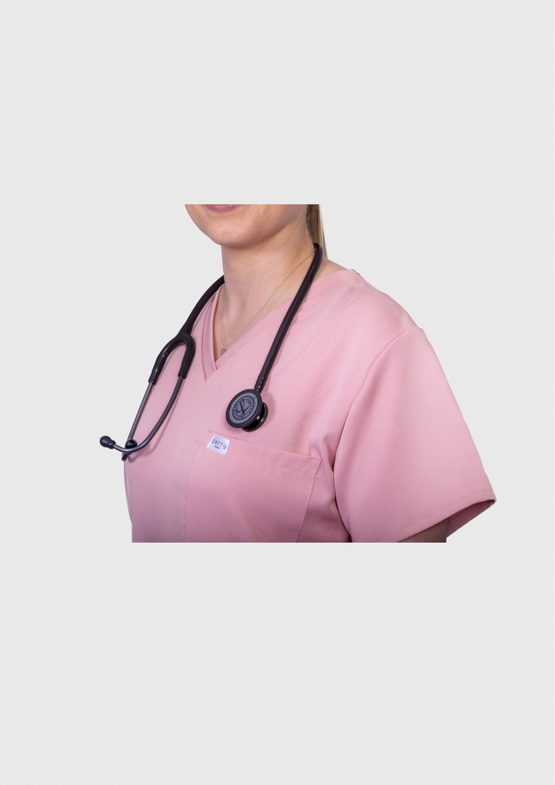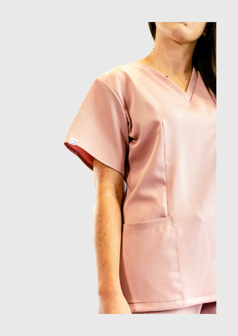 scrubs top. This top is fitted with a darted back, a modern V-neck and three pockets.